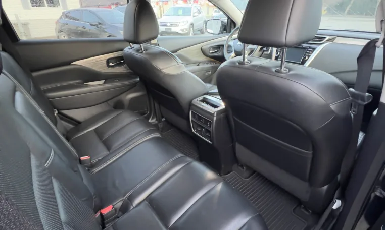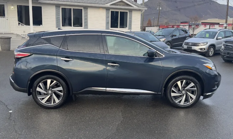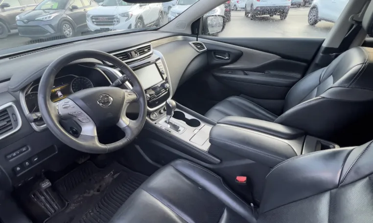 Power meets refinement under the hood. The Murano Platinum features a robust 3.5L V6 engine producing 260 horsepower at 6,000 rpm and 240 lb-ft of torque at 4,400 rpm. Paired with Nissan’s smooth CVT transmission and all-wheel drive, this SUV delivers confident acceleration for highway merging and passing while maintaining a quiet, refined ride. The independent multi-link rear suspension and speed-sensitive power steering ensure composed handling and responsive control in all driving conditions.