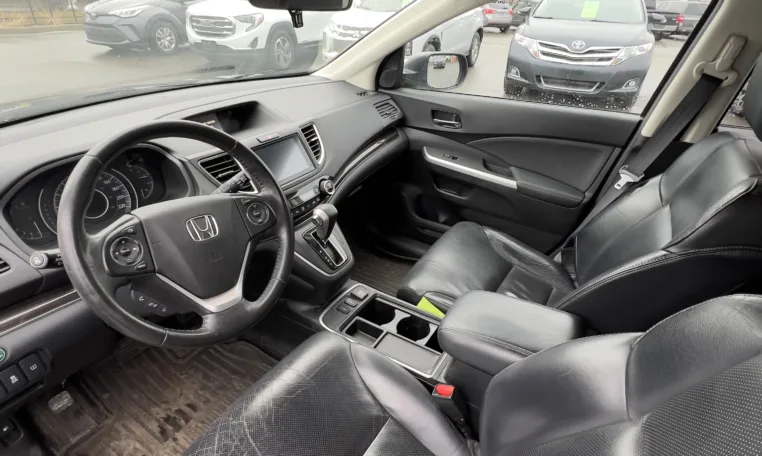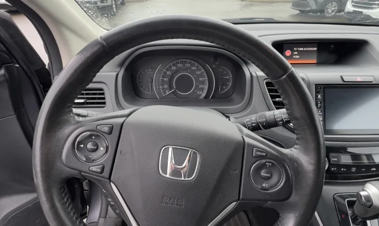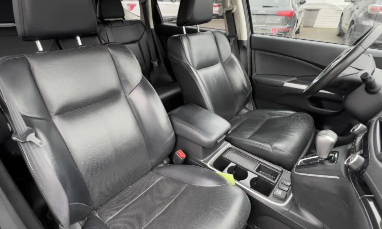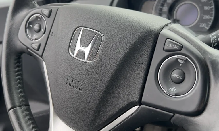 Inside, the CR‑V Sport focuses on comfort and tech. You get well‑bolstered cloth or mixed‑material seats with heat up front, a power driver’s seat on many Sport units, dual‑zone automatic climate control, and a leather‑wrapped steering wheel. The centre stack is anchored by a touchscreen system with Apple CarPlay, Android Auto, Bluetooth, USB, and steering‑wheel audio controls, so it’s easy to plug in your phone, run navigation, and keep passengers entertained.