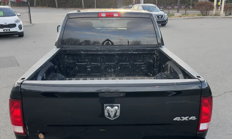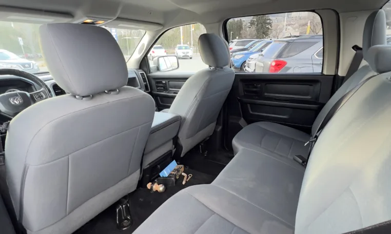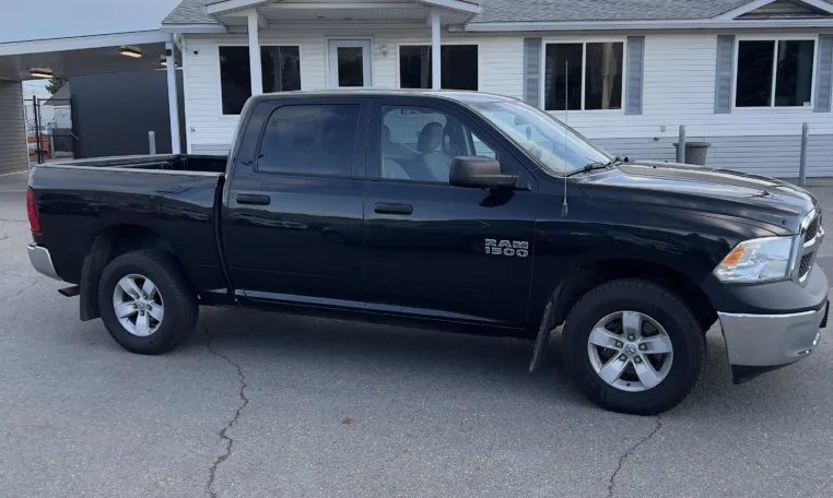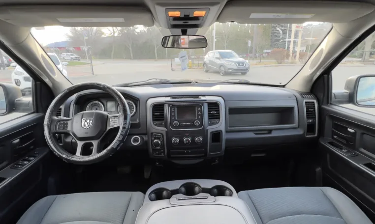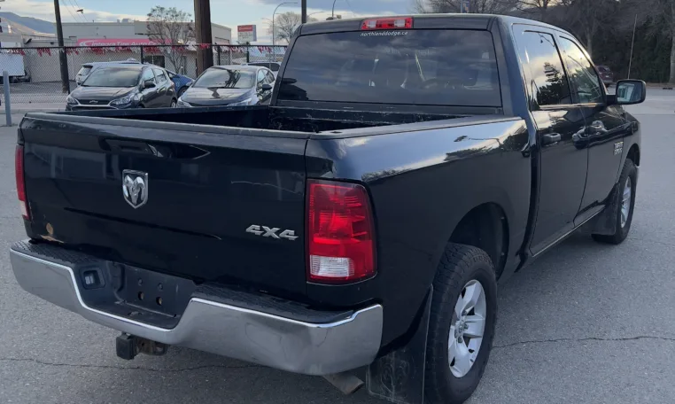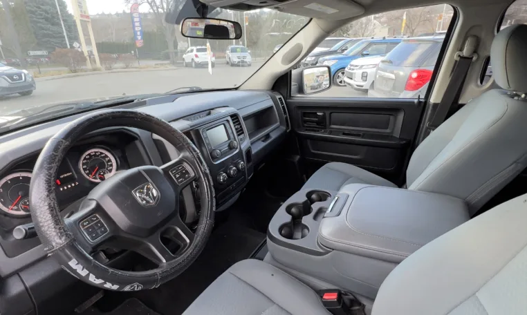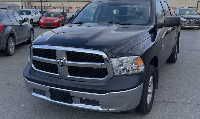 Under the hood, it’s powered by a 3.6L Pentastar V6 engine paired with an 8-speed automatic transmission, delivering smooth acceleration and solid towing capability. With a fuel economy rating of approximately 14.5L/100km in the city and 10.2L/100km on the highway, it offers respectable efficiency for a truck of its size and class. The Crew Cab configuration provides generous interior space for up to six passengers, while the 6’4″ long bed adds serious cargo capacity for tools, equipment, or weekend gear.
