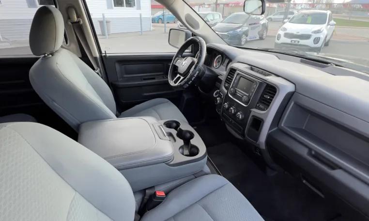 Safety is well-covered with standard features like electronic stability control, traction control, anti-lock brakes, and multiple airbags. The Ram’s solid frame and suspension provide a confident ride, whether you’re navigating city streets or rough terrain. With its rugged build and proven reliability, this truck is ready to take on whatever you throw at it.
